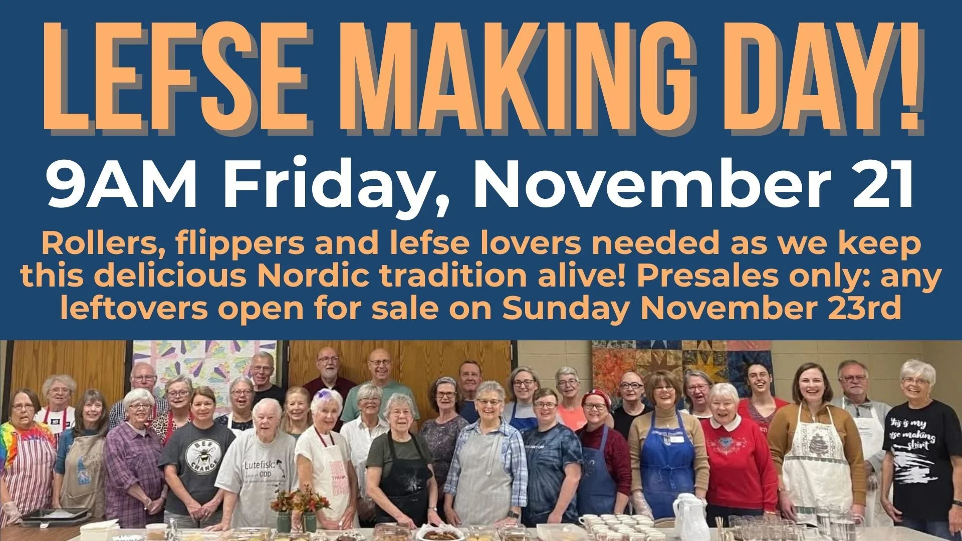 Any left-over lefse will also be available for purchase on Sunday, so plan to take home some deliciousness next Sunday!